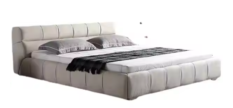 The bed frame is sturdy and elegant, made from high-quality wood or metal. It provides strong support for the mattress while enhancing the bedroom’s style. Its sleek design adds comfort and sophistication to the space.