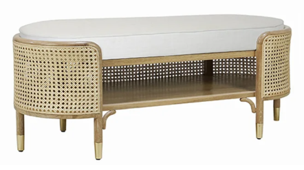 The bench is stylish and versatile, featuring a sturdy wooden or metal frame with a cushioned seat. Perfect for entryways, dining areas, or bedrooms, it adds both comfort and elegance to any space.