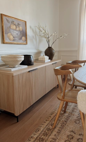 The console table is sleek and stylish, featuring a sturdy wooden top with elegant metal or wooden legs. Perfect for entryways or living rooms, it holds decorative items, keys, and essentials, enhancing the space beautifully.